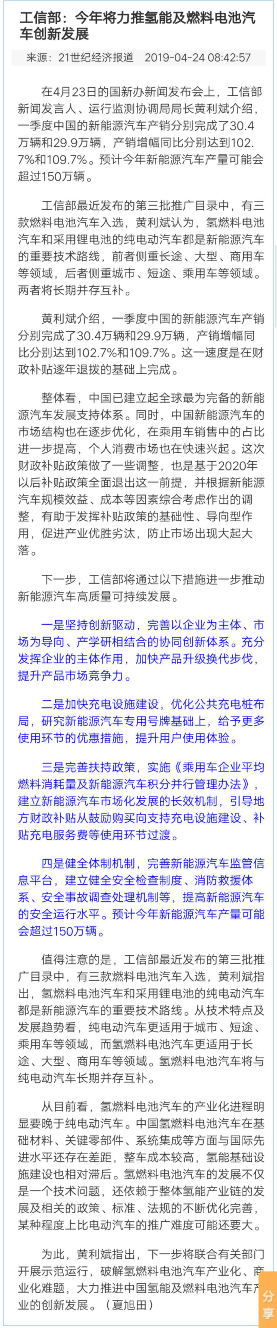 工信部:今年将力推氢能及燃料电子汽车创新发展